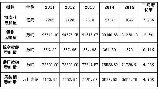 表1 2011-2015年上海现代物流业规模统计表