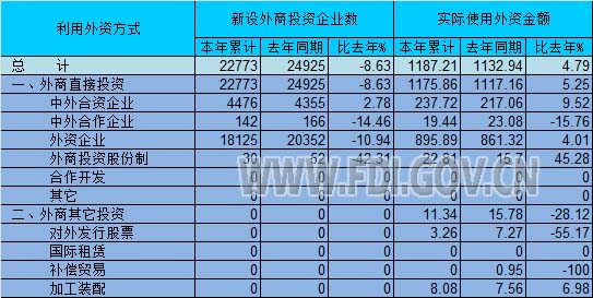 全国利用外资情况
